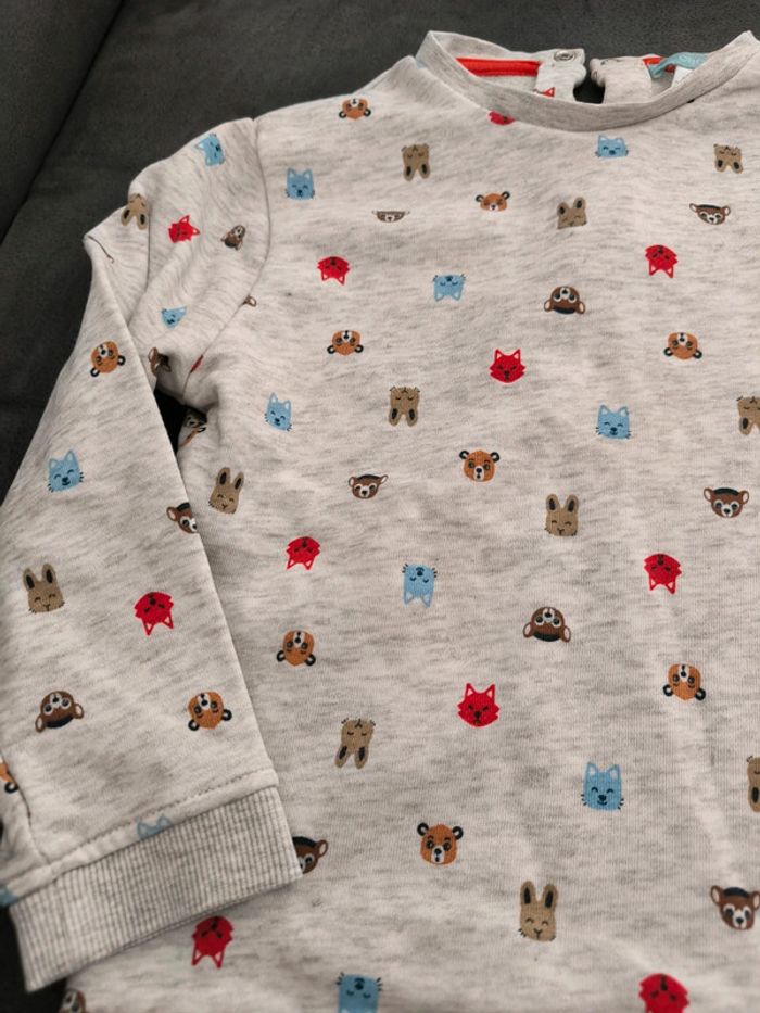 Sweat Okaïdi 3 ans gris avec petits animaux Pressions arriere pour passage tête aisée