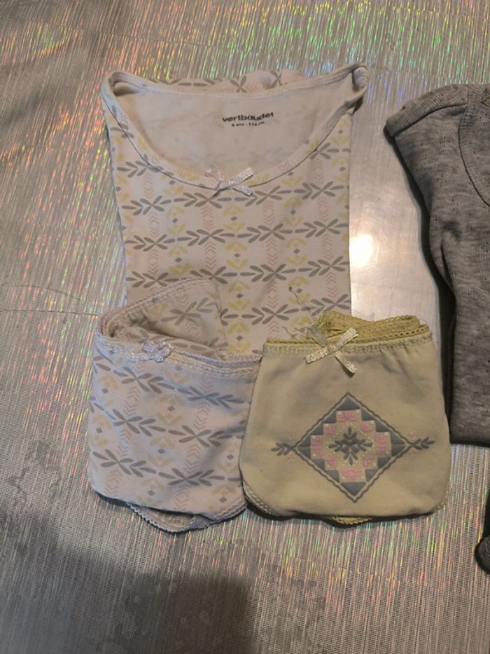 Vertbaudet 6 ans jaune gris blanc 3 slips et 2 t shirts manches courtes