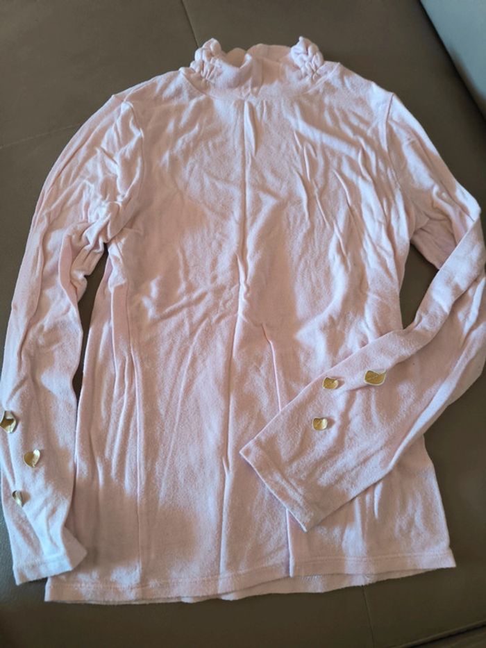 Sous pull col roulé rose pâle volanté Patchs Coeurs dorés Orchestra 10ans
