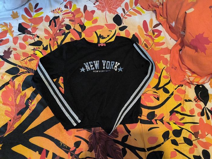 Top manches longues avec rayures bras argentés et inscription aussi, taille en bas élastique voir dernière photo