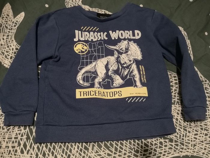 Sweat Jurrassic Park 3 ans bleu motif Triceratops acheté été 2023! Servi pour 1 seul enfant