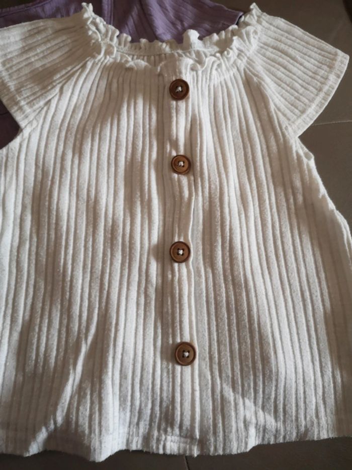 1 top violet et 1 top écru 8-9 ans Avant petits boutons
