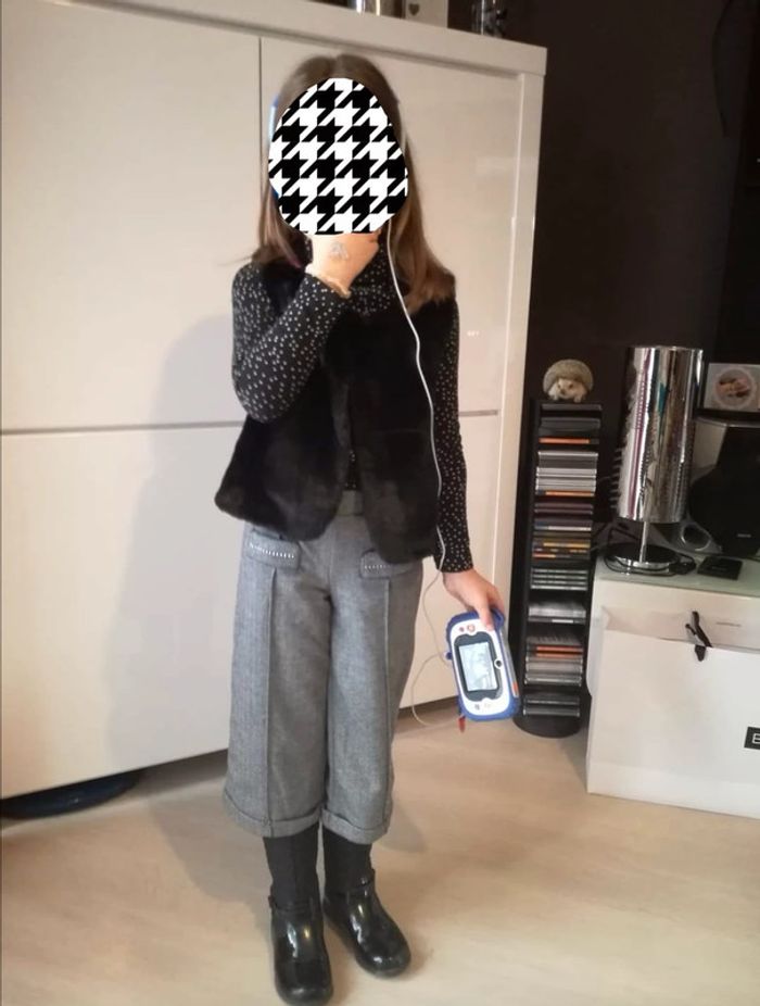 *Manteau long 3/4 en 8 ans et son * pantalon chaud doublé 3/4 - ajustable à la taille en 7 ans * Top manches longues col blanc 8 ans très bel ensemble Hiver ! très bon état (le sous pull peut être vendu avec à votre demande, le gilet lui est vendu )