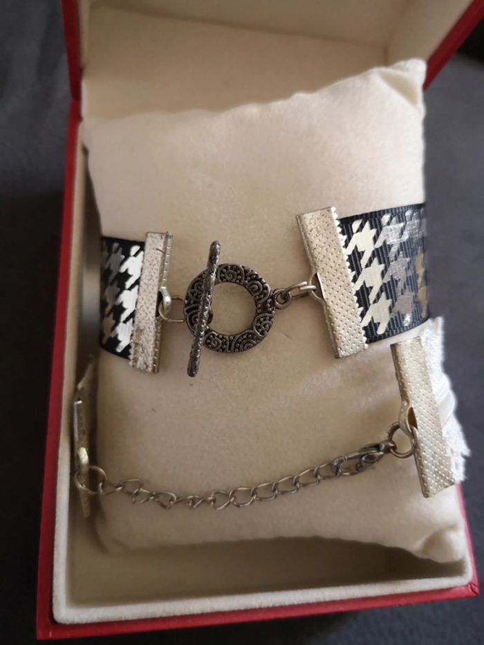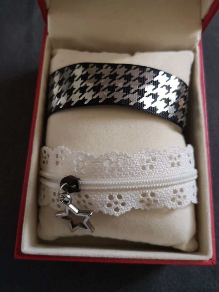 Bracelet pied de poule avec jolie fermeture 7€ Bracelet blanc originale dentelle fermeture éclair avec étoile 7€