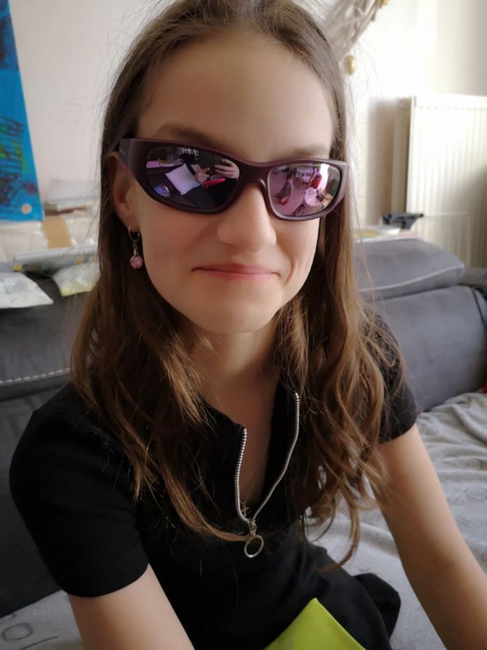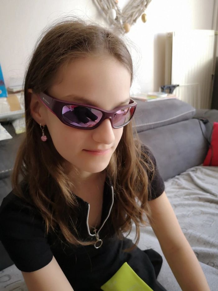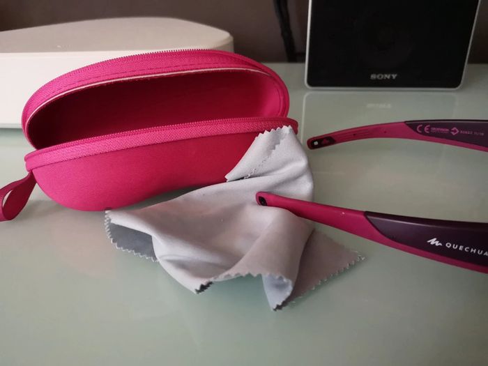 Lunettes de soleil portée à 7 /8 ans Parfait état Rose /violette Avec étui