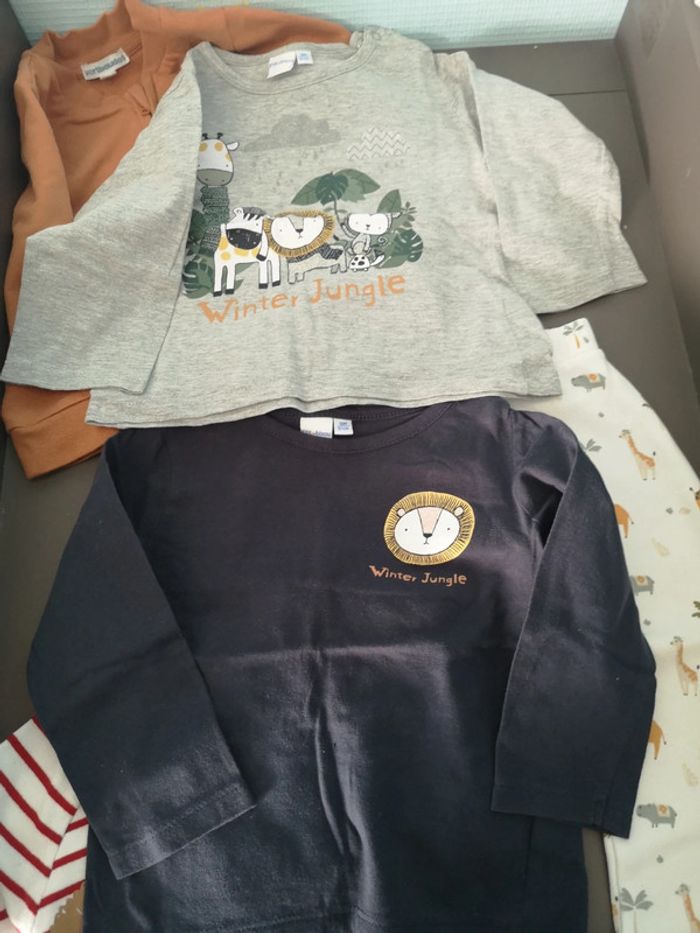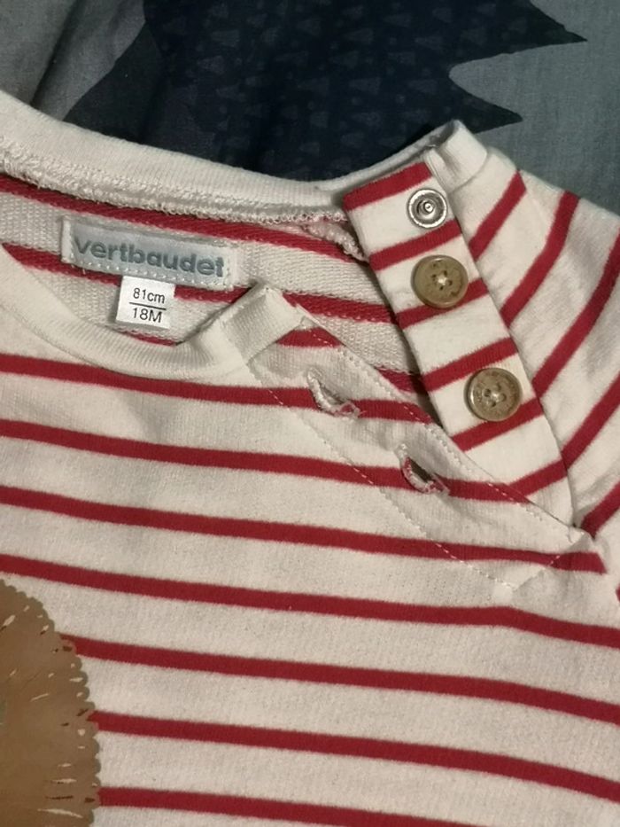 2 Bodys manches courtes dont 1 verbaudet = 5€ 2 t shirts manches longues Ptits bisous = 6.50€ ⚠️1 pantalon molleton verbaudet = 7€ vendu!!!! ⚠️ 1 sweat mi saison verbaudet = 7€ 1 gilet coton léger verbaudet =7€ ⚠️1 bob 12 - 18 mois verbaudet =3€ VENDU ⚠️