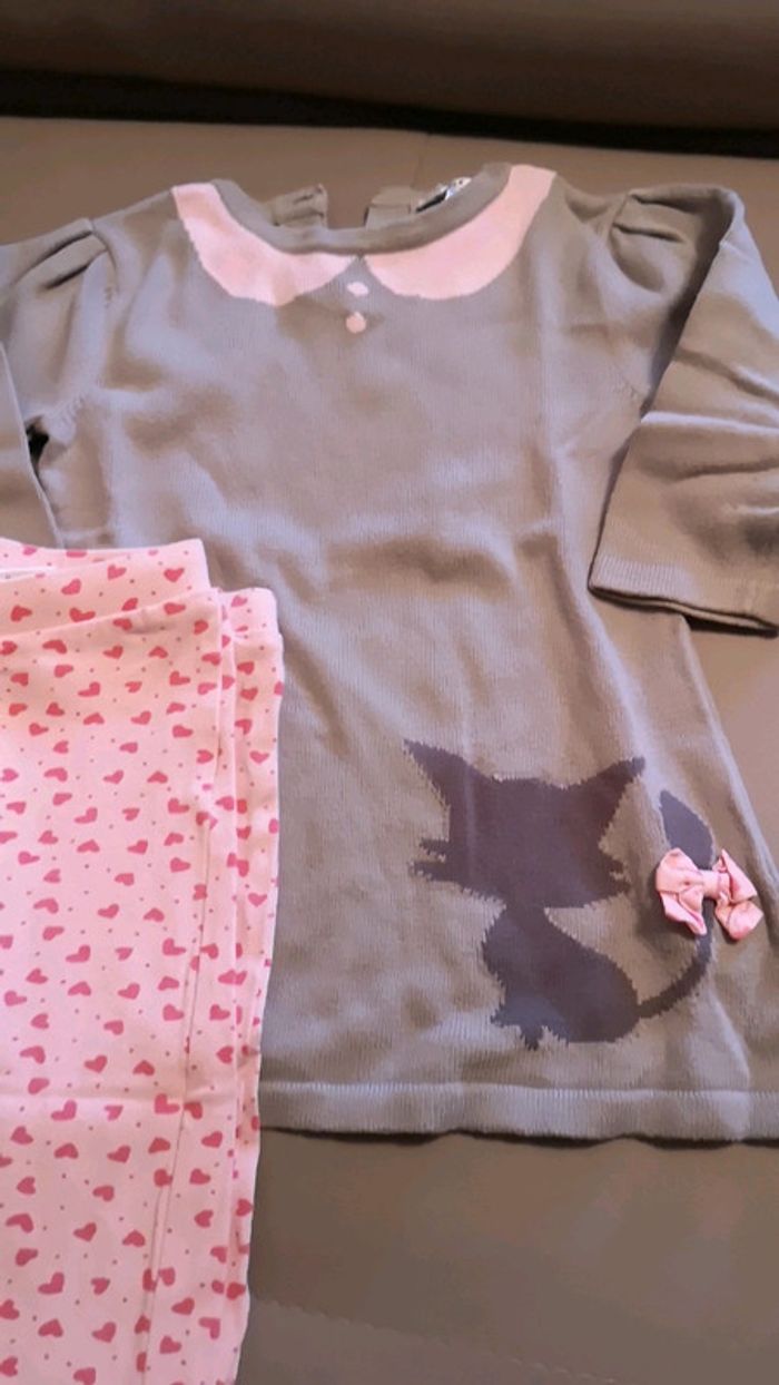 Superbe ensemble robe tunique chaton et 2 legging à assortir