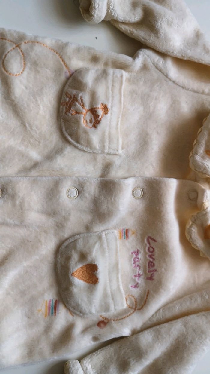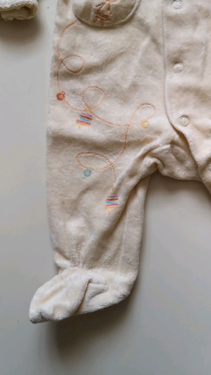 Dors bien velours jaune 1 mois Col volant, motifs Pressions avant Très bon état