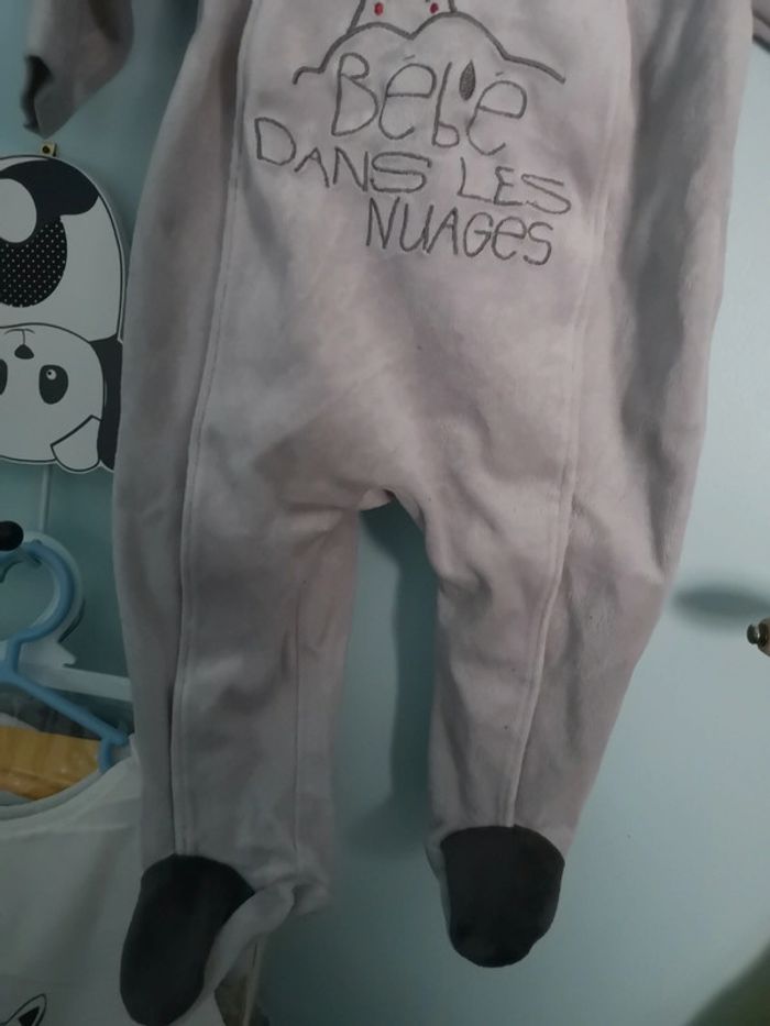 Dors bien gris avec pressions avant Velours Super état tout doux Logement non fumeur Lessive bébé le chat 1et achat