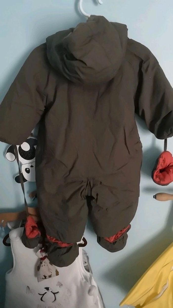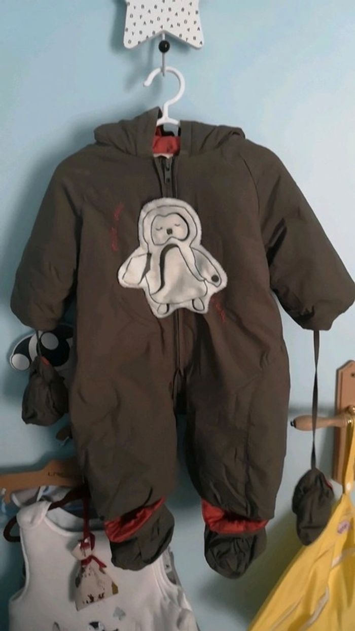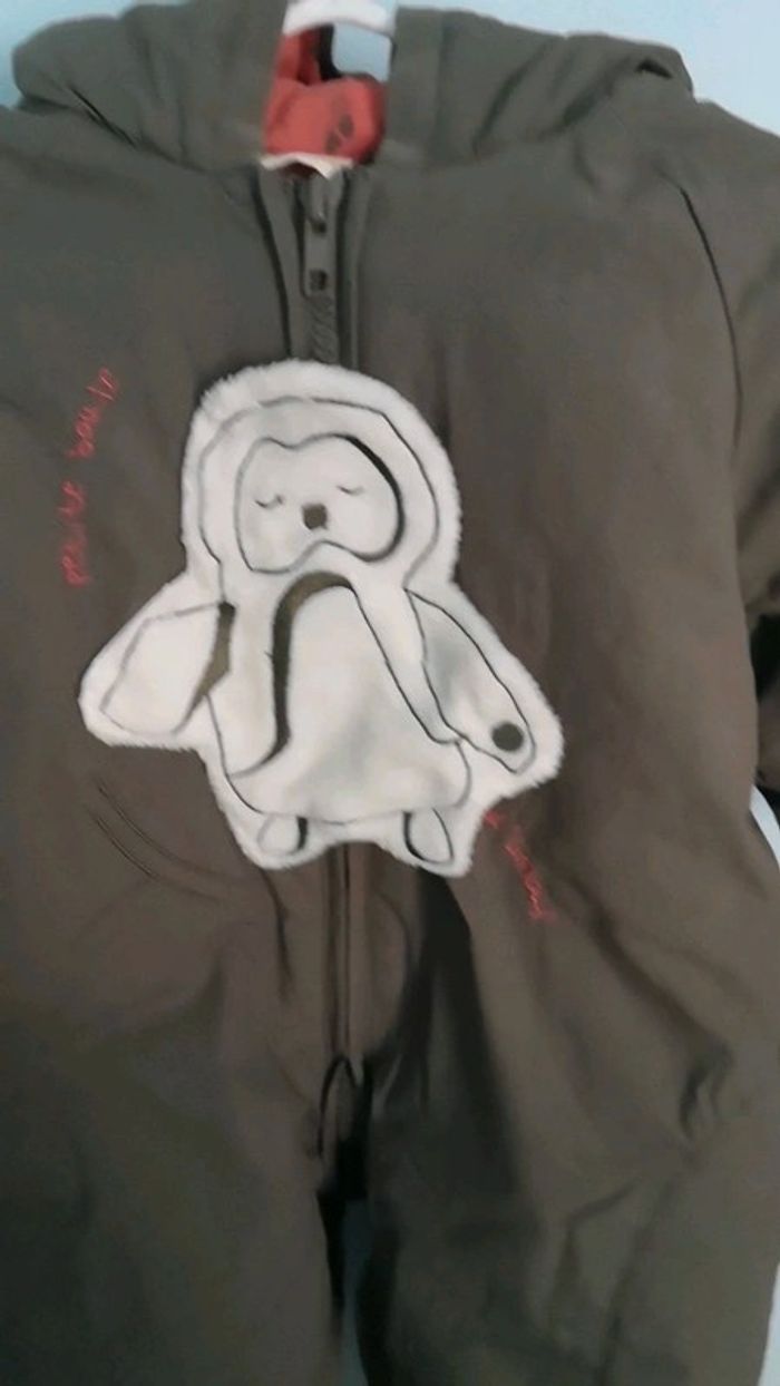 Combi pilote à fermeture éclair kaki avec pingouin blanc avec pression pieds et gants à pressions Super état