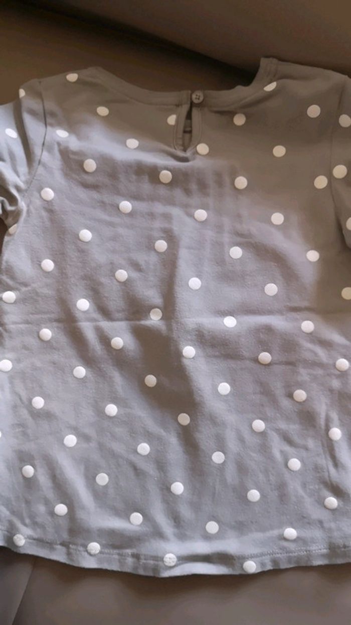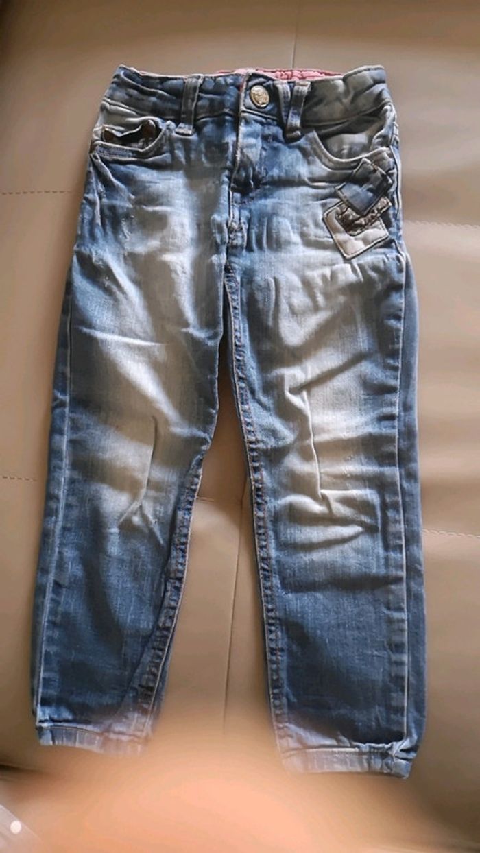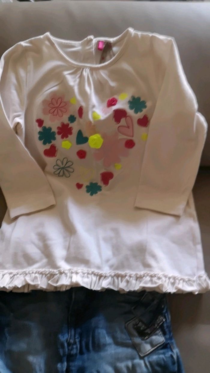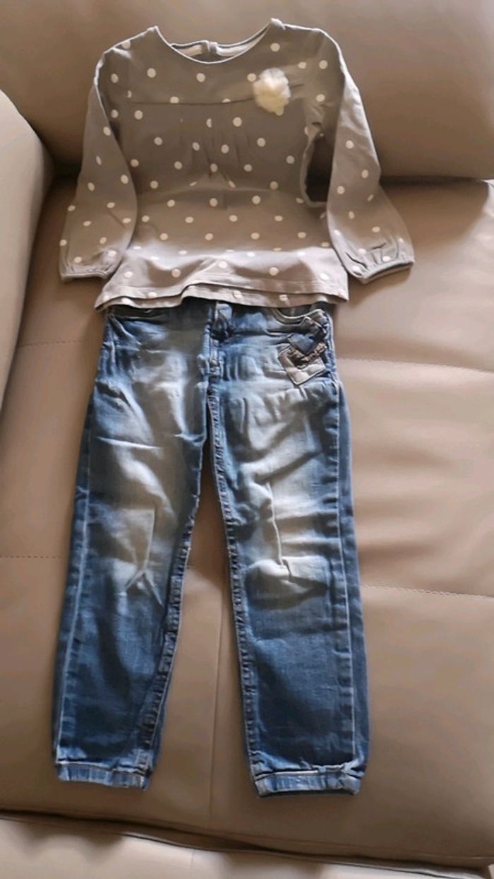 * Jean Zara 2-3 ans très beau confort et moderne * Top manches longues gris à pois blanc et fleur. Fermeture bouton à l'arrière verbaudet * Top manches longues fleuri 23 mois taille grand 2-3ans orchestra petite tâche peu visible voir dernière photo