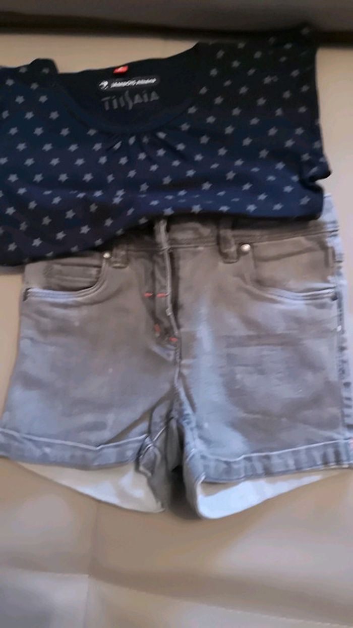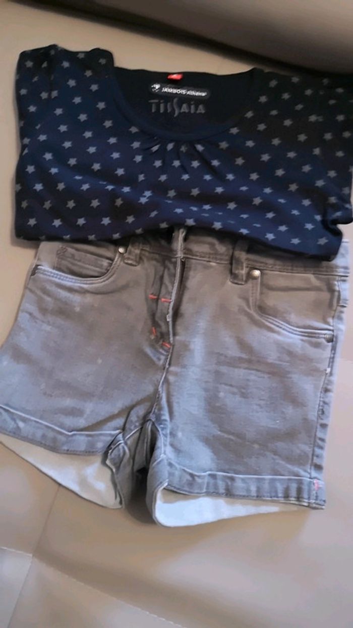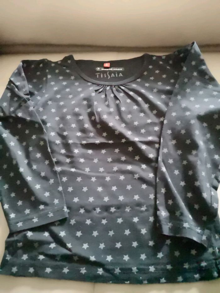 T-shirt manches longues noir avec des étoiles grises 1.50€ Short gris Verbaudet 5€