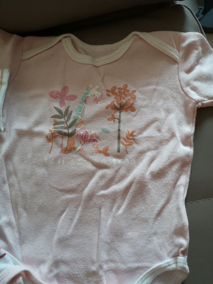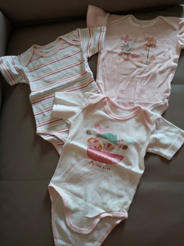 3 Bodys manches courtes rayures, motifs animaux