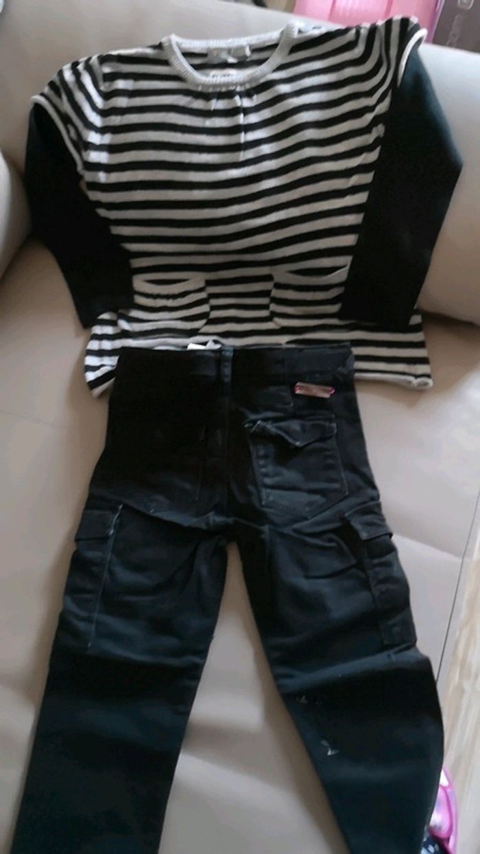 un pantalon noir okaidi bon état Pull noir argent tbe