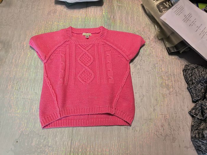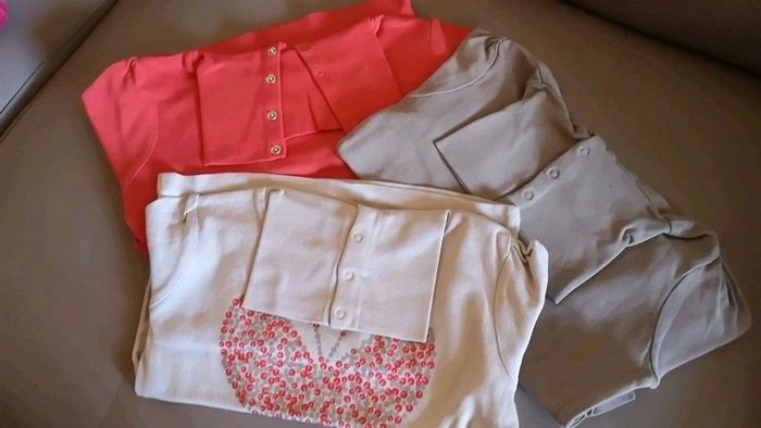 2 sous pulls avec pressions col uni orange et taupe (le beige print papillon est vendu) 5€