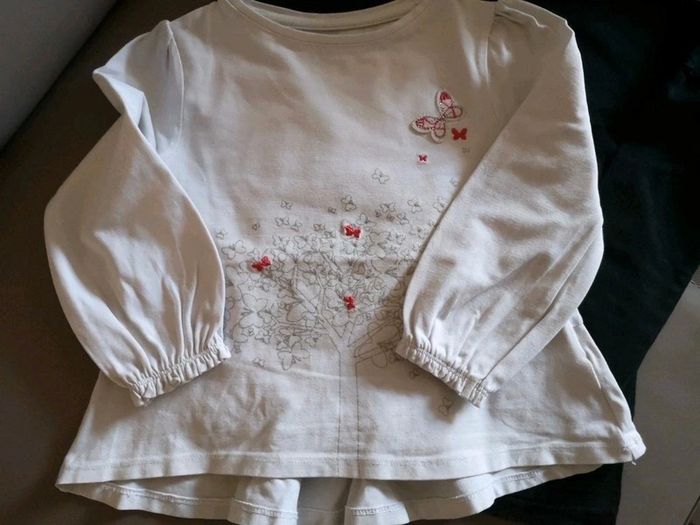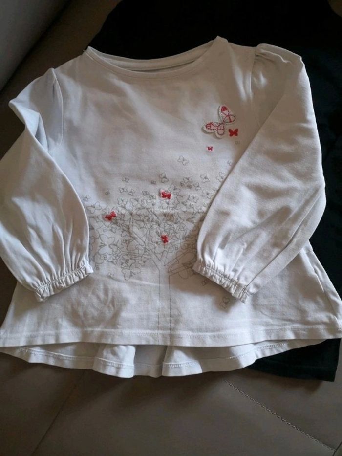 1 t shirt manches longues print papillon orangé et argenté bon état petite tâche sur devant pas très visible voir photo 3€