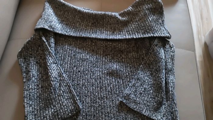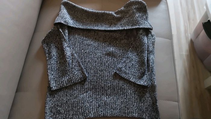 Pull gris chiné col bateau (épaules) manches 3/4 A Porter avec jean, pantalon ou jupe sky un pull chic et confort