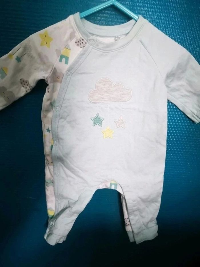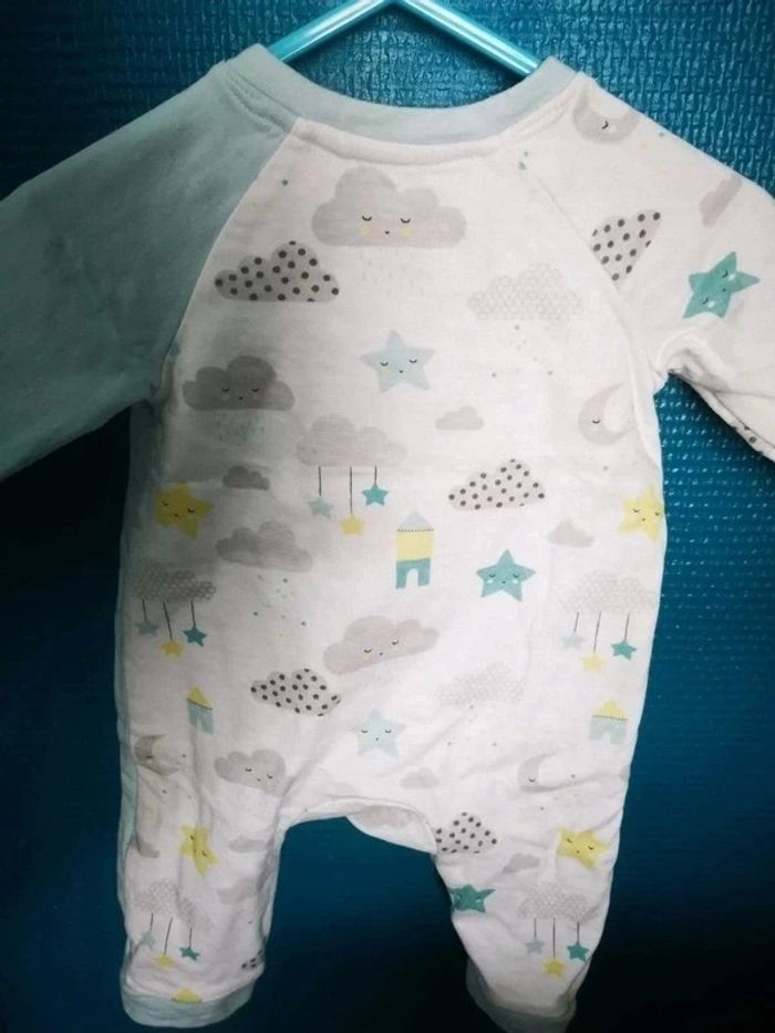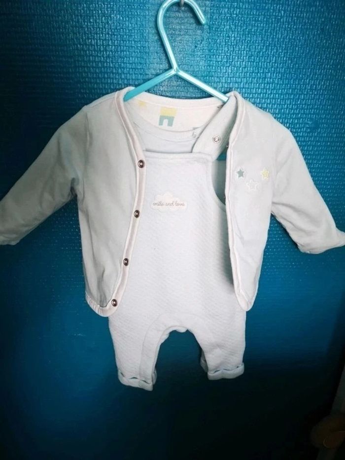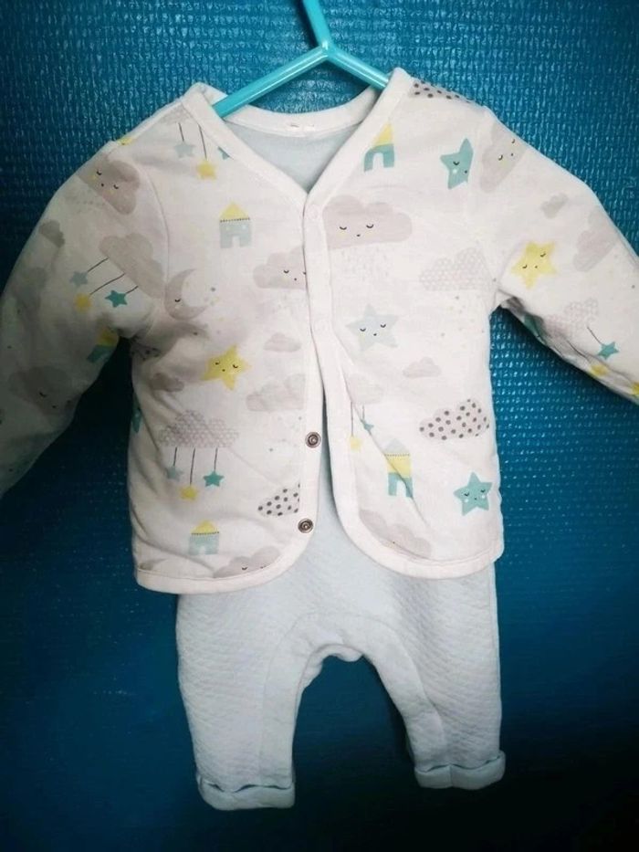 Très joli thème orchestra nuages... Salopette bleu ciel 1 mois Gilet coton epais réversible 3 mois Dors bien pression intérieures coton 3 mois 2 bavoirs +2 paires de chaussettes épaisses 15 16 Bonnet 38cm et ses moufles = bébé 1-3 mois Neufs jamais portés juste lavé Bébé a grandi trop vite et trop chaud déjà pour ses 2 mois