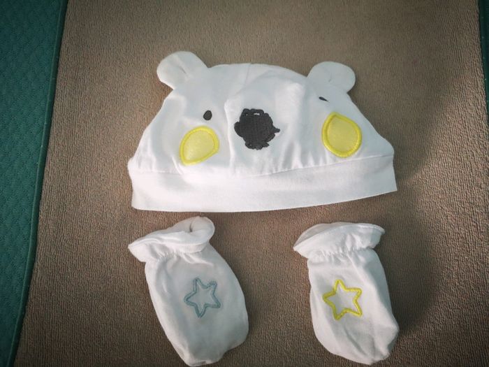 Bonnet et moufles bébé 3mois - photo numéro 1