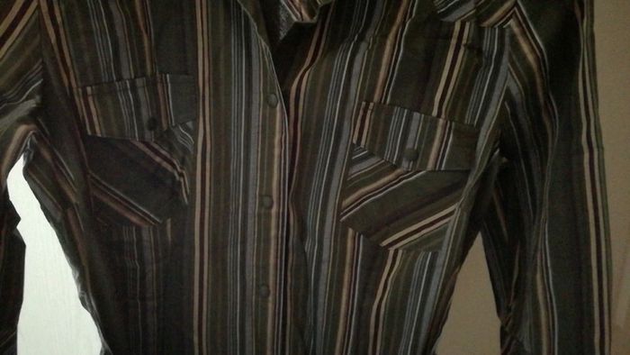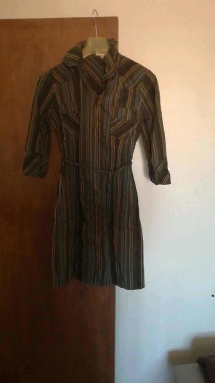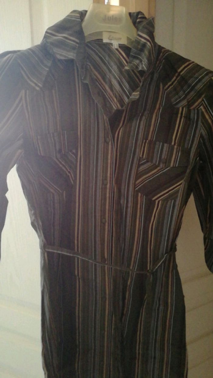 Tunique rayé avec ceinture, 2 poches poitrine, manches 3/4, tunique longue jusque genoux. Photo complémentaire portée possible. Idéal pour porter avec un legging ou un pantacourt ou seule en robe