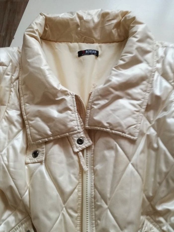 superbe veste Morgan pour la mi saison comme neuve, effet irisé doré et écru selon lumière