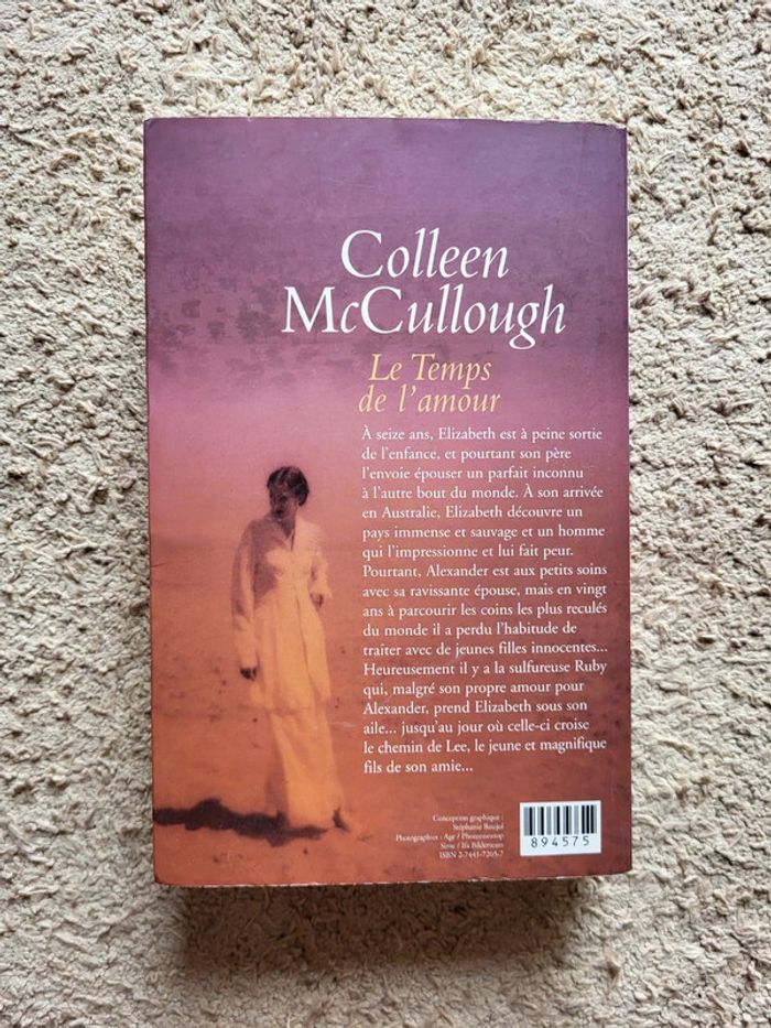 ⭐️ Nombreux livres dans mon dressing réductions sur les lots activées ✨️ 📚 Livre "Le Temps de l'amour", un roman d'amour de Colleen McCullough 📖 Excellent état 📍Une saga captivante qui explore les thèmes de l'amour, de la solitude et de l'émancipation, avec des personnages profonds 📕 En Écosse, en 1872, la jeune Elizabeth Drummond, âgée de 16 ans, quitte son village natal pour épouser son cousin Alexander Kinross, devenu un riche entrepreneur en Australie. À son arrivée, elle découvre un pays sauvage et un mari distant, toujours épris de la belle Ruby Costevan. Isolée dans une demeure luxueuse, Elizabeth cherche sa place et son bonheur dans ce nouveau monde. Au fil des années, elle se révèle être une femme forte et indépendante, construisant sa propre voie loin des conventions sociales