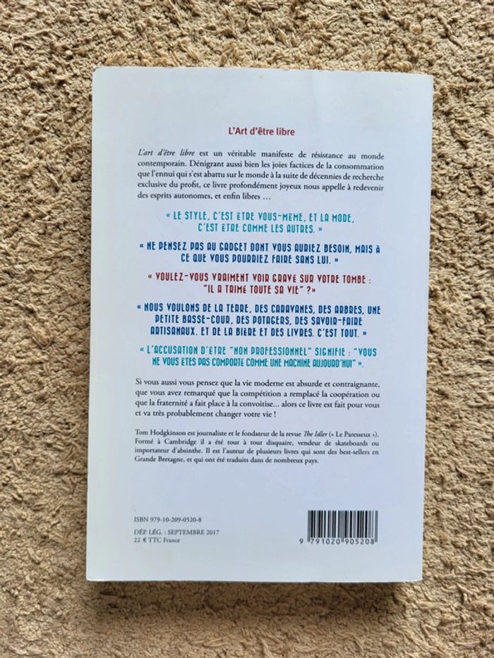 ⭐️ Nombreux livres dans mon dressing réductions sur les lots activées ✨️ 📚 Livre "L’art d’être libre dans un monde absurde" de Tom Hodgkinson Édition Les Liens qui Libèrent 📖 Excellent état 📍Parfait pour les amateurs de philosophie pratique, de slow life ou ceux qui cherchent à reprendre le contrôle de leur vie 📕 Avec humour et philosophie, Tom Hodgkinson nous invite à désapprendre la soumission moderne, fuir l’obsession de la productivité et retrouver le plaisir de vivre librement. Entre désobéissance douce, critique du travail, réflexion sur le temps, et joie de vivre, ce livre est un manuel d’indépendance joyeuse et une bouffée d’air frais dans un monde trop sérieux