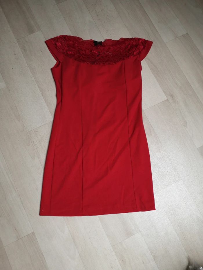Robe rouge, fermeture éclair dans le dos et dentelle en haut de la robe, taille L jamais porté.