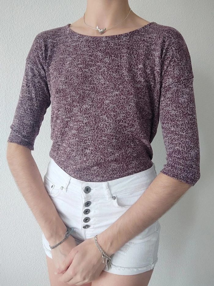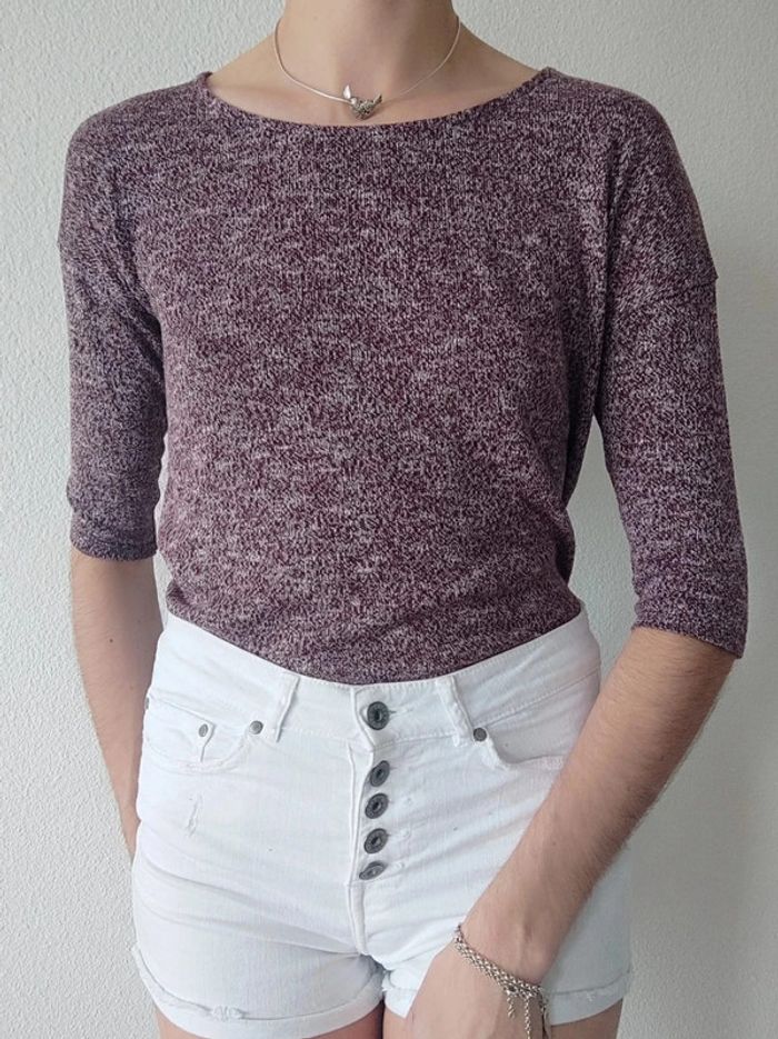 Tee-shirt 3/4 bordeaux blanc chiné / Gémo - 36/S - photo numéro 3