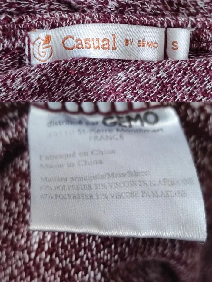🇫🇷 𝗙𝗿𝗮𝗶𝘀 𝗱𝗲 𝗣𝗼𝗿𝘁 𝗮̀ 𝗽𝗿𝗶𝘅 𝗠𝗶𝗻𝗶 𝗽𝗼𝘀𝘀𝗶𝗯𝗹𝗲 📦 (𝘴𝘶𝘳 𝘒𝘪𝘢𝘣𝘪𝘚𝘦𝘤𝘰𝘯𝘥𝘦𝘔𝘢𝘪𝘯 / 𝘷𝘪𝘢 𝘔𝘰𝘯𝘥𝘪𝘢𝘭 𝘙𝘦𝘭𝘢𝘺) ➸ 1€99 pour 1 article ➸ 0€99 pour un lot  ⁠෴﹏෴﹏෴﹏෴﹏෴﹏෴ 💸 ℝ𝕖́𝕕𝕦𝕔𝕥𝕚𝕠𝕟𝕤 𝕤𝕦𝕣 𝕝𝕖𝕤 𝕃𝕠𝕥𝕤 💸 🌱 𝟐 𝐚𝐫𝐭𝐢𝐜𝐥𝐞𝐬 : -5% ☘️ 𝟑 𝐚𝐫𝐭𝐢𝐜𝐥𝐞𝐬 : -10% 🍀 𝟓 𝐚𝐫𝐭𝐢𝐜𝐥𝐞𝐬 : -15% 🌿 𝟏𝟎 𝐚𝐫𝐭𝐢𝐜𝐥𝐞𝐬 : Réduction supplémentaire  ⁠෴﹏෴﹏෴﹏෴﹏⁠෴﹏෴ 🗂️ 𝗖𝗮𝘁𝗲́𝗴𝗼𝗿𝗶𝗲 : #flocofemme36 📏 𝗧𝗮𝗶𝗹𝗹𝗲 : 36/S 🏷️ 𝗠𝗮𝗿𝗾𝘂𝗲 : Casual By Gémo 🎨 𝗖𝗼𝗹𝗼𝗿𝗶𝘀 : Rouge bordeaux, blanc 🏁 𝗧𝗵𝗲̀𝗺𝗲 / 𝗠𝗼𝘁𝗶𝗳 : Chiné 🧵 𝗖𝗼𝗺𝗽𝗼𝘀𝗶𝘁𝗶𝗼𝗻 : 67% Polyester, 31% Viscose, 2% Élasthanne 🌍 𝗣𝗮𝘆𝘀 𝗱𝗲 𝗙𝗮𝗯𝗿𝗶𝗰𝗮𝘁𝗶𝗼𝗻 : Chine 🇨🇳 ❌ 𝗗𝗲́𝗳𝗮𝘂𝘁(𝘀) : Aucun 📜 𝗗𝗲́𝘁𝗮𝗶𝗹𝘀 𝘀𝘂𝗽𝗽𝗹𝗲́𝗺𝗲𝗻𝘁𝗮𝗶𝗿𝗲𝘀 : Manches 3/4 trois quarts. Col rond. Tissu épais mais fluide. ෴﹏෴﹏෴﹏෴﹏෴﹏෴ 🌈 𝑴𝒆𝒔 𝒎𝒆𝒏𝒔𝒖𝒓𝒂𝒕𝒊𝒐𝒏𝒔 : - 1m82 / 182 cm - Hanche ≈ 85 cm - Taille ≈ 74 cm - Bonnet A ෴﹏෴﹏෴﹏෴﹏෴﹏෴ 🛍️ 𝐷𝑟𝑒𝑠𝑠𝑖𝑛𝑔 𝑑𝑒 : #elodietra Sportwear streetwear chill cocooning automne printemps mi-saison