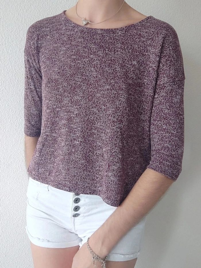 Tee-shirt 3/4 bordeaux blanc chiné / Gémo - 36/S - photo numéro 2