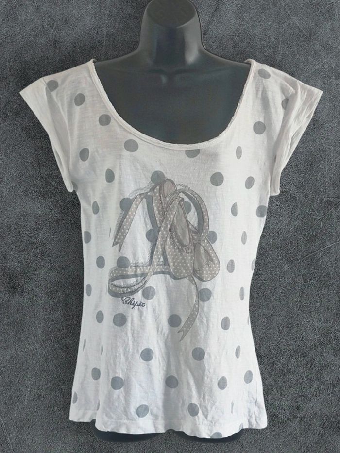 Tee-shirt blanc ballerine pois gris vintage / Chipie - 38/M à 40/L