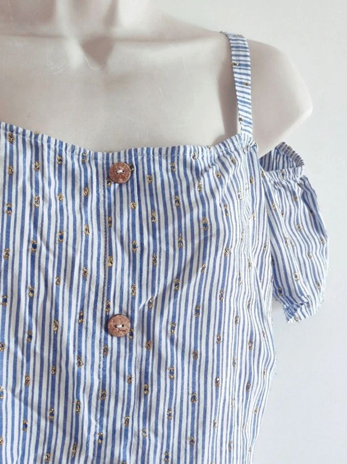 Top épaule dénudé rayé blanc bleu doré / Grain de Malice - 38/M à 40/L - photo numéro 6