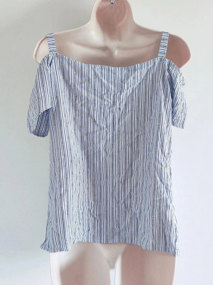 Top épaule dénudé rayé blanc bleu doré / Grain de Malice - 38/M à 40/L - photo numéro 1