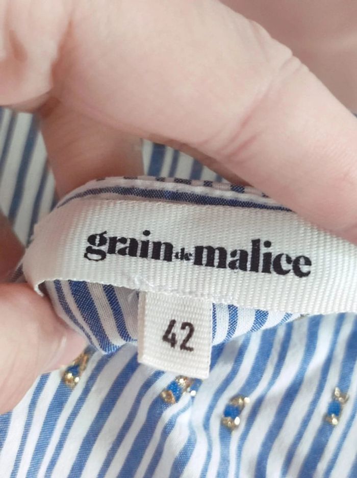 Top épaule dénudé rayé blanc bleu doré / Grain de Malice - 38/M à 40/L - photo numéro 10