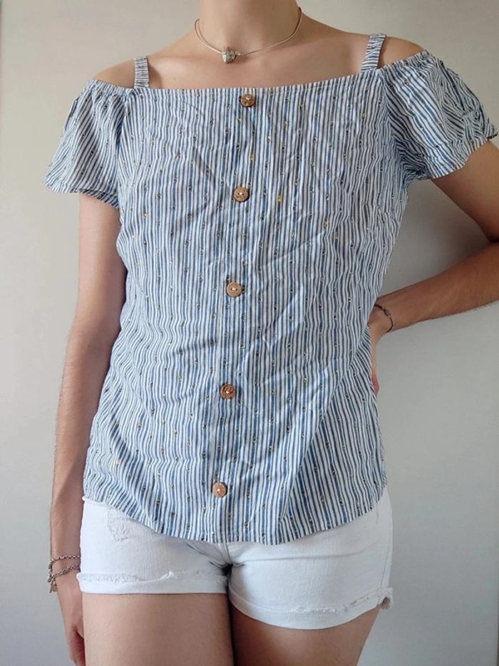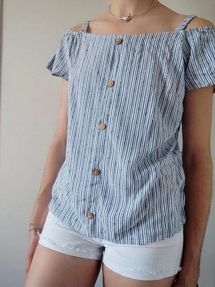 🇫🇷 𝗙𝗿𝗮𝗶𝘀 𝗱𝗲 𝗣𝗼𝗿𝘁 𝗮̀ 𝗽𝗿𝗶𝘅 𝗠𝗶𝗻𝗶 𝗽𝗼𝘀𝘀𝗶𝗯𝗹𝗲 📦 (𝘴𝘶𝘳 𝘒𝘪𝘢𝘣𝘪𝘚𝘦𝘤𝘰𝘯𝘥𝘦𝘔𝘢𝘪𝘯 / 𝘷𝘪𝘢 𝘔𝘰𝘯𝘥𝘪𝘢𝘭 𝘙𝘦𝘭𝘢𝘺) ➸ 1€99 pour 1 article ➸ 0€99 pour un lot  ⁠෴﹏෴﹏෴﹏෴﹏෴﹏෴ 💸 ℝ𝕖́𝕕𝕦𝕔𝕥𝕚𝕠𝕟𝕤 𝕤𝕦𝕣 𝕝𝕖𝕤 𝕃𝕠𝕥𝕤 💸 🌱 𝟐 𝐚𝐫𝐭𝐢𝐜𝐥𝐞𝐬 : -5% ☘️ 𝟑 𝐚𝐫𝐭𝐢𝐜𝐥𝐞𝐬 : -10% 🍀 𝟓 𝐚𝐫𝐭𝐢𝐜𝐥𝐞𝐬 : -15% 🌿 𝟏𝟎 𝐚𝐫𝐭𝐢𝐜𝐥𝐞𝐬 : Réduction supplémentaire  ⁠෴﹏෴﹏෴﹏෴﹏෴﹏෴ 🗂️ 𝗖𝗮𝘁𝗲́𝗴𝗼𝗿𝗶𝗲 : #flocofemme38 #flocofemme40 📏 𝗧𝗮𝗶𝗹𝗹𝗲 : Affiché 42/XL | Correspond plutôt à du 38/M , 40/L 🏷️ 𝗠𝗮𝗿𝗾𝘂𝗲 : Grain de Malice, bleu clair, doré or, beige marron 🎨 𝗖𝗼𝗹𝗼𝗿𝗶𝘀 : Blanc, 🏁 𝗧𝗵𝗲̀𝗺𝗲 / 𝗠𝗼𝘁𝗶𝗳 : Rayé, rayures 🧵 𝗖𝗼𝗺𝗽𝗼𝘀𝗶𝘁𝗶𝗼𝗻 : Boutons décoratifs en bois 🌍 𝗣𝗮𝘆𝘀 𝗱𝗲 𝗙𝗮𝗯𝗿𝗶𝗰𝗮𝘁𝗶𝗼𝗻 : Non mentionné ❌ 𝗗𝗲́𝗳𝗮𝘂𝘁(𝘀) : Aucun 📜 𝗗𝗲́𝘁𝗮𝗶𝗹𝘀 𝘀𝘂𝗽𝗽𝗹𝗲́𝗺𝗲𝗻𝘁𝗮𝗶𝗿𝗲𝘀 : Débardeur manches courtes. Petits pois / points paillettes brodés. Tissu léger ෴﹏෴﹏෴﹏෴﹏෴﹏෴ 🌈 𝑴𝒆𝒔 𝒎𝒆𝒏𝒔𝒖𝒓𝒂𝒕𝒊𝒐𝒏𝒔 : - 1m82 / 182 cm - Hanche ≈ 85 cm - Taille ≈ 74 cm - Bonnet A ෴﹏෴﹏෴﹏෴﹏෴﹏෴ 🛍️ 𝐷𝑟𝑒𝑠𝑠𝑖𝑛𝑔 𝑑𝑒 : #fabiennedu Vintage romantique boho hippie bohème marin marinière estivale summer été plage fairycore primaire campagne rustique