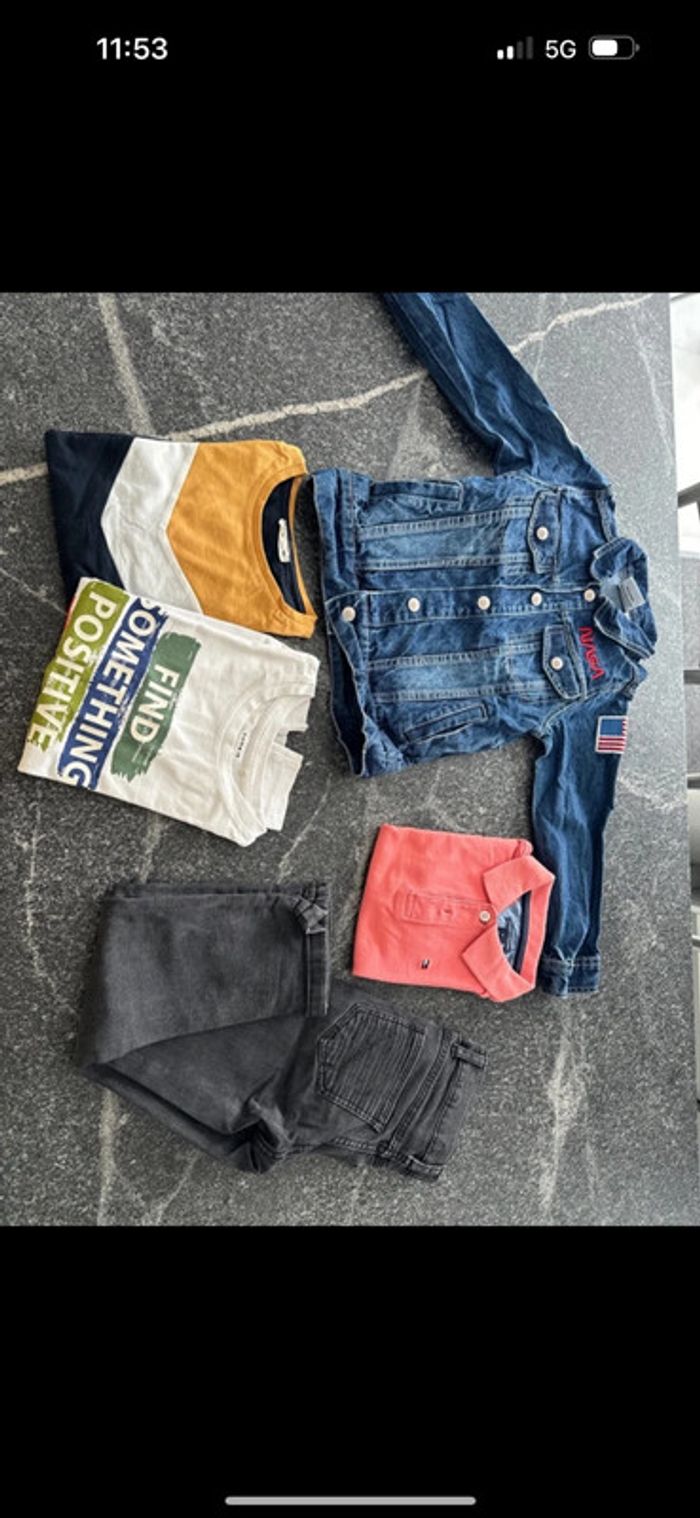 Lot de vêtements taille 6 ans très bon état ou neuf Veste en jean Vertbaudet neuve 2 tshirts manches longues dont 1 name it et 1 little cigogne 1 jean storytelling 1 polo Tommy Hilfiger notifié taille 5 ans mais taille grand