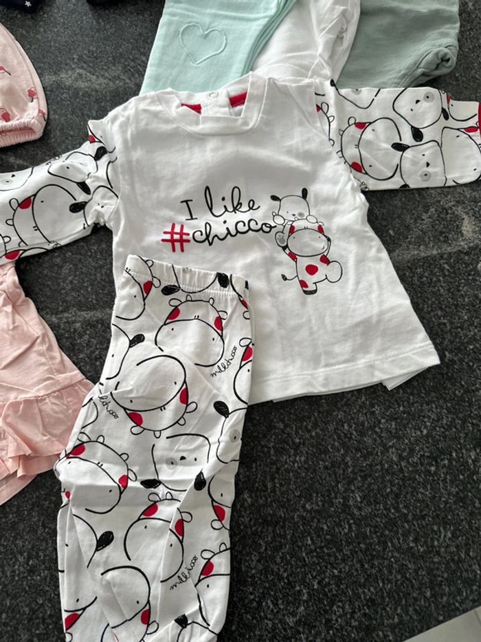 Lot de vêtements bébé fille 3 mois très bon état Voir neuf Il se compose de 1 ensemble Chicco t-shirt manches longues et pantalon avec pieds léger neuf 1 t-shirt manches courtes sergent major 2 combi shorts dont 1 Obaibi et 1 Chicco 1 pantalon Kiabi 2 pantacourts dont 1 HM et 1 Kiabi