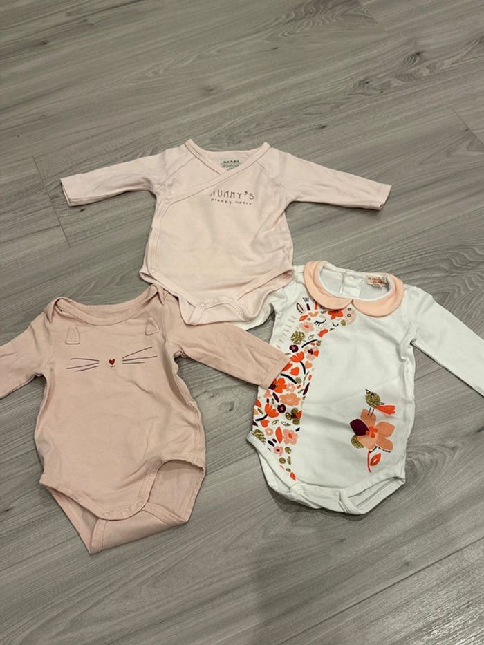 Lot de 3 bodies fille 3 mois très bon état voir neuf - photo numéro 2