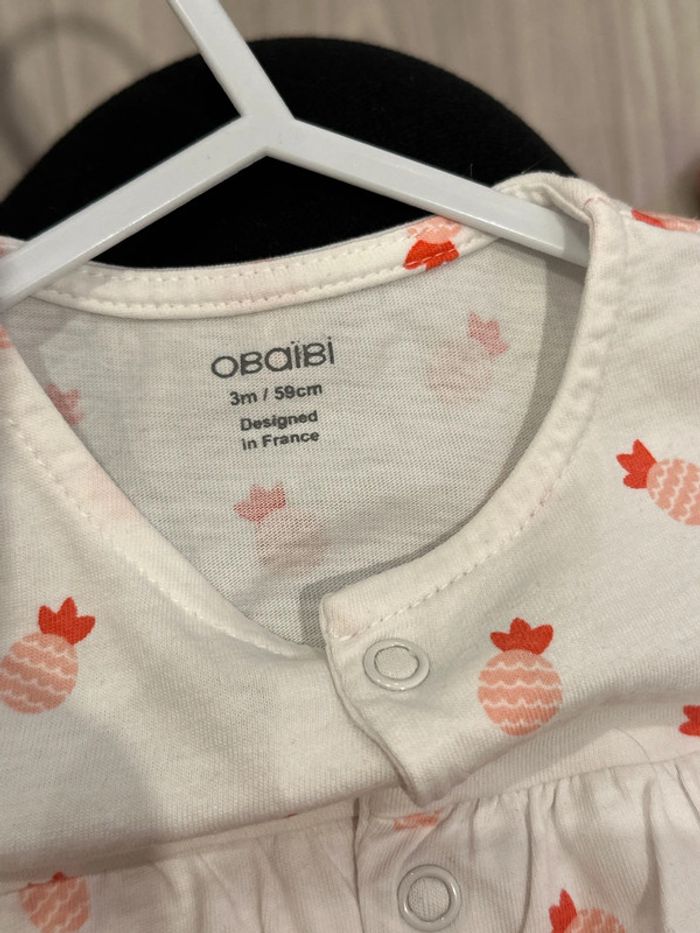 Pyjamas bébé fille 3 mois Obaibi et Vert baudet, très bon état.