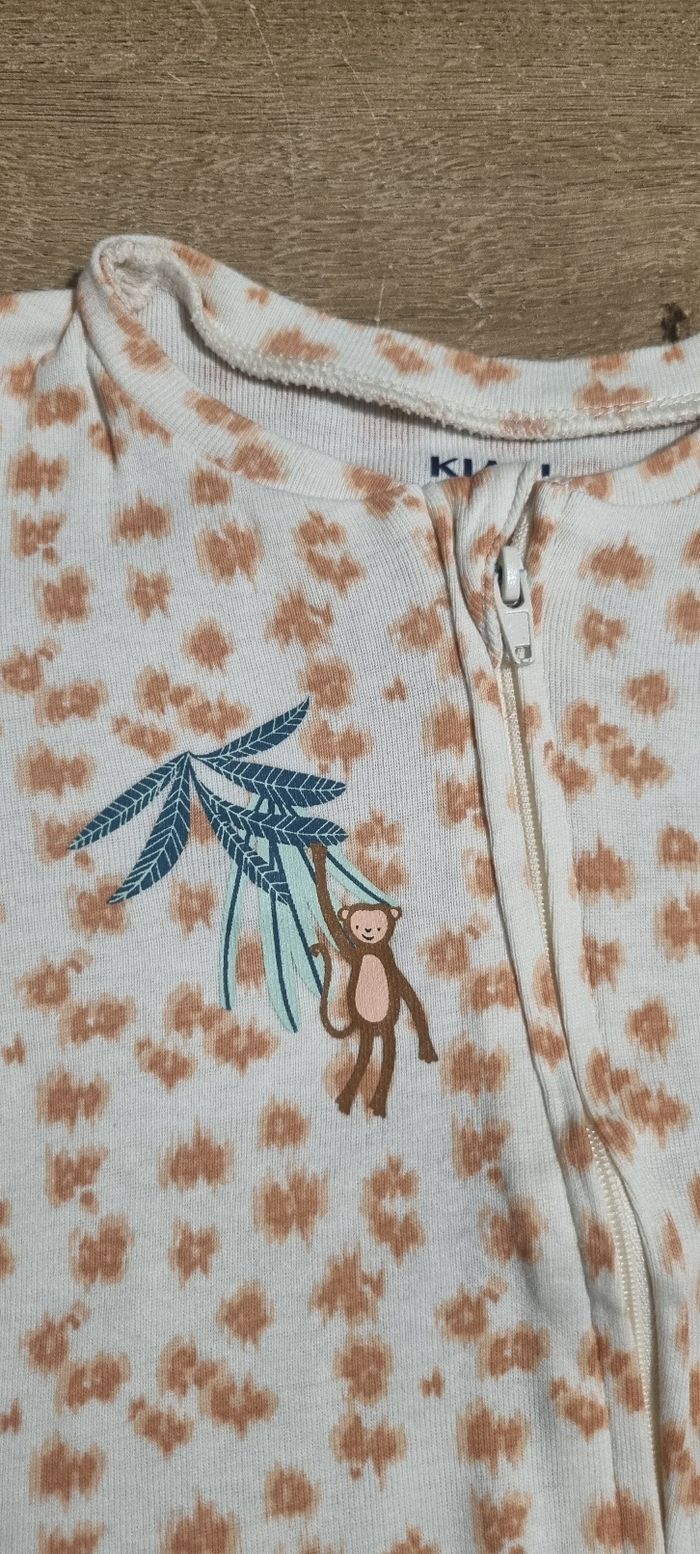 Pyjama grenouillÚre en coton avec motif singe Fermeture éclair à l'avant, systÚme antidérapant sous les pieds Kiabi taille 12 mois Parfait état