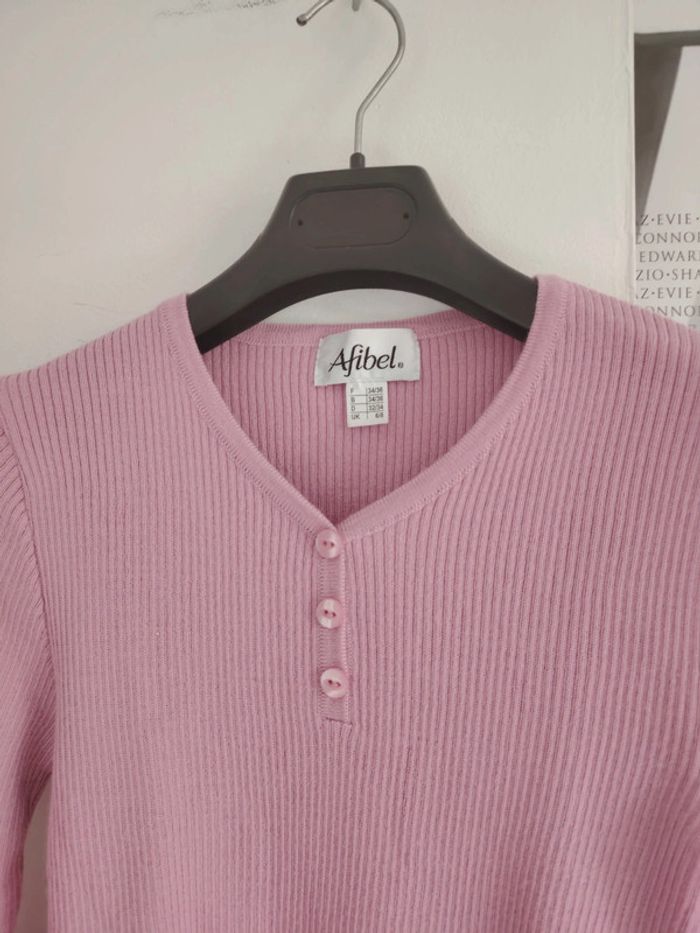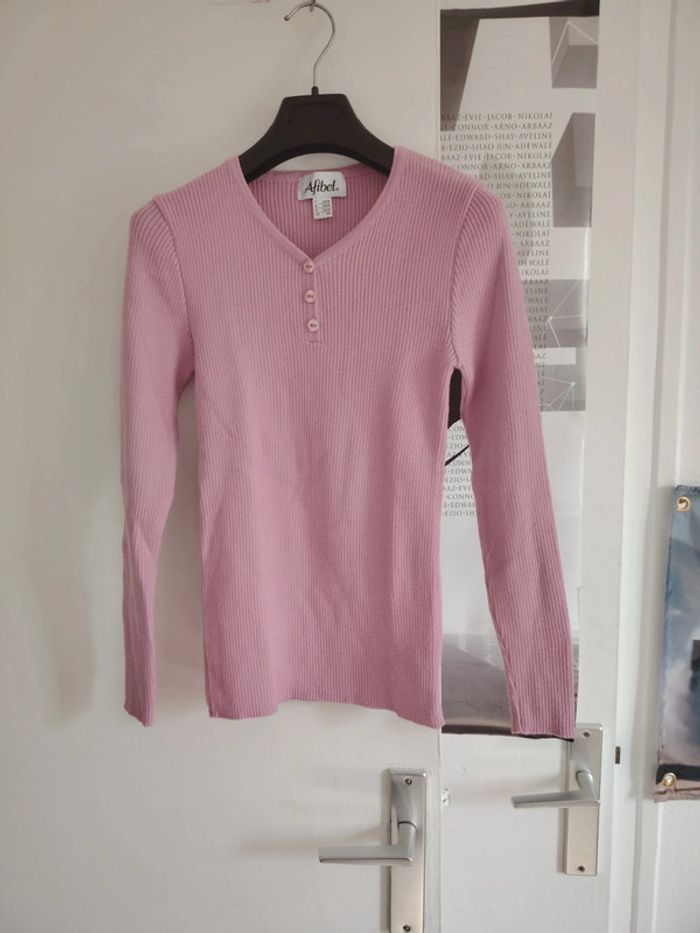 #meganeayrontrentequatre Pull rose marque afibel taille 34/36