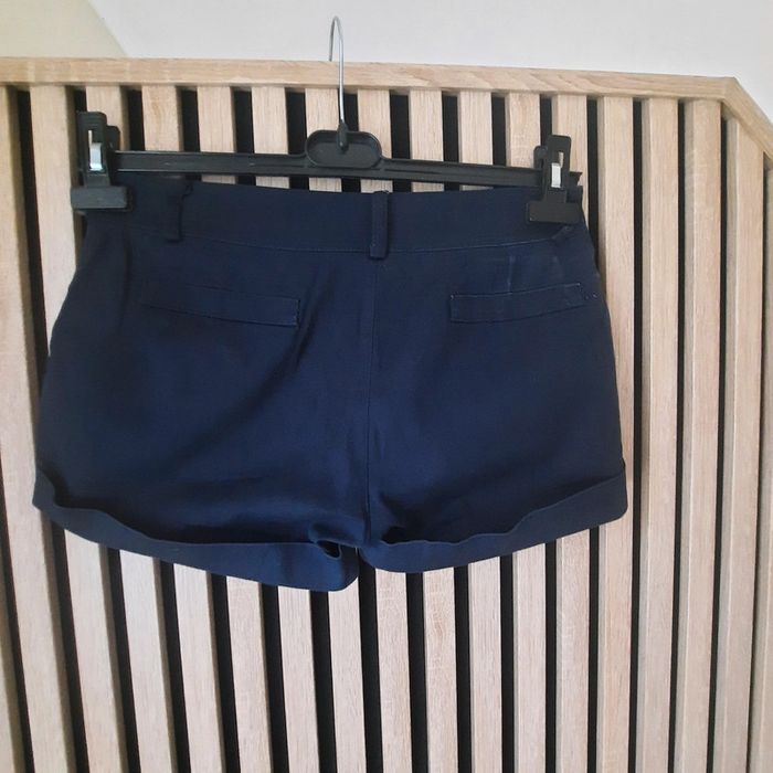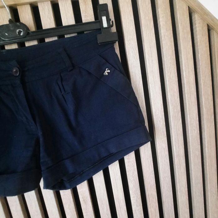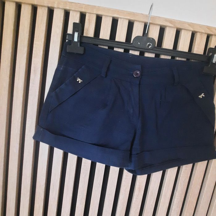 Short coton et élasthane 2 poches sur les côtés avec un petit nœud doré Longueur 28 cm N hésitez pas à visiter mon profil et laissez vous guider par mes différents # #clementine13430femmest40 #shortmarine40 #shortbleumarine40 #vintagedressing40