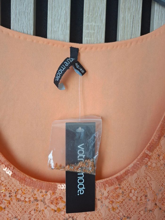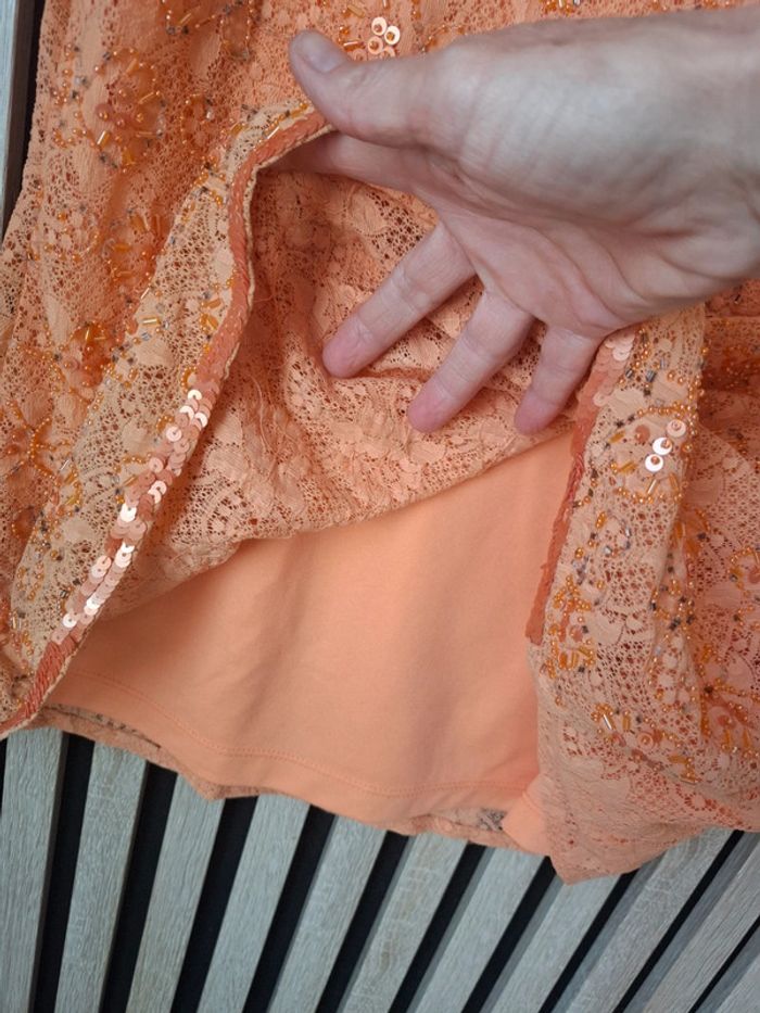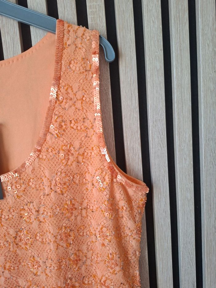 Top debardeur orange perles et dentelle Neuf T 46/48 - photo numéro 3