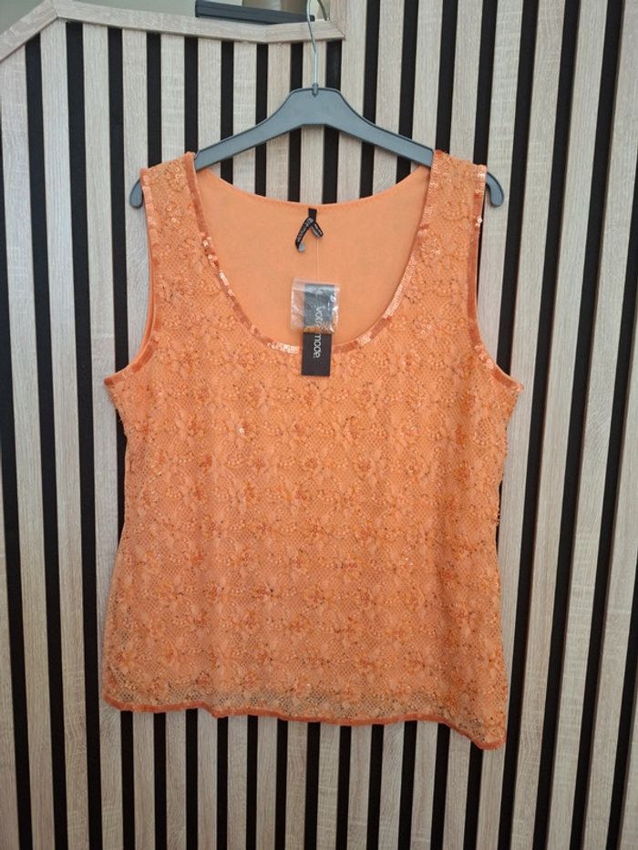 Top debardeur orange perles et dentelle Neuf T 46/48 - photo numéro 1