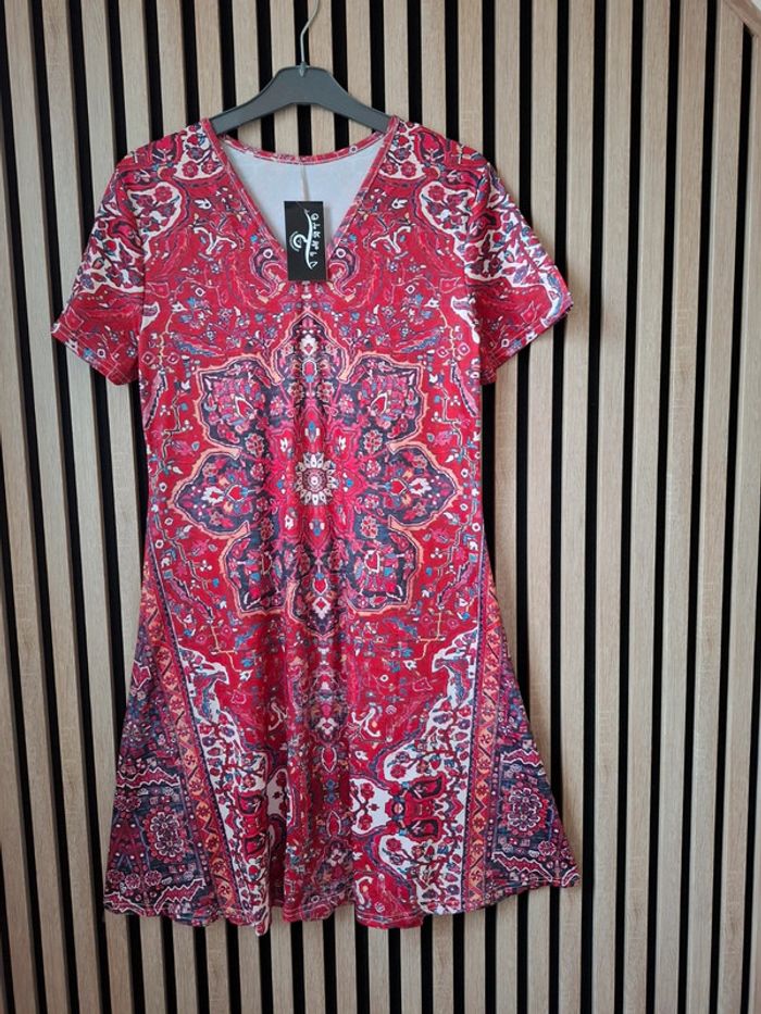 Robe imprimée rouge neuve avec étiquette T 38 - photo numéro 1