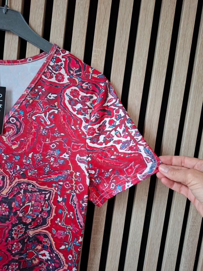 Robe imprimée rouge T 38 Neuve avec étiquette 🏷 Polyester Élasthane Aisselles 48/50 cm Longueur 96 cm N hésitez pas à visiter mon profil et laissez vous guider par mes différents # #clementine13430femmest38 #ribeneuveavecetiquette #roberouge38