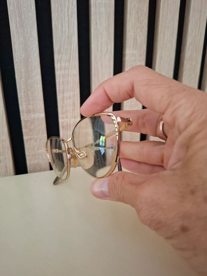 Lunettes en métal doré avec liseré noir . Vendues pour la monture qui est en bon état général malgré quelques marques d usures Je ne connais pas la correction des verres. N hésitez pas à visiter mon profil et laissez vous guider par mes différents # #clementine13430accessoires #lunettesvintage #lunettesvintagefemme #lunettesdevuesvintage