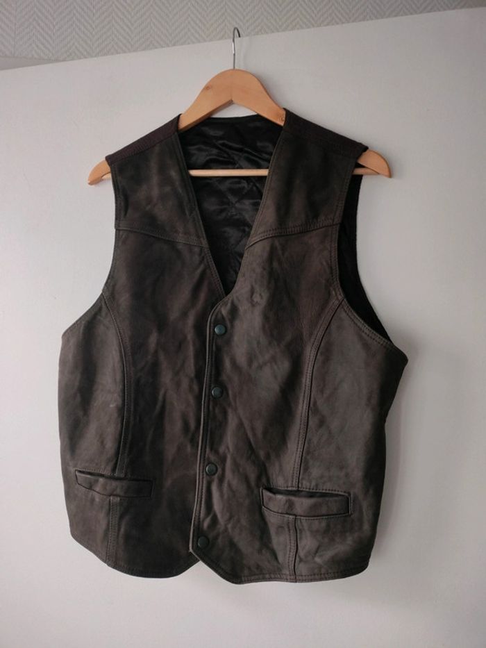 Gilet cuir de chèvre vintage Taille XL TB état #aedenhomme #cuirdechèvre #giletcuir
