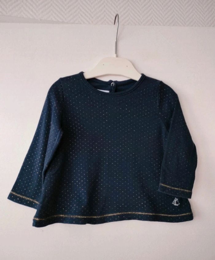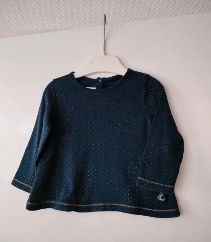 (C) t-shirt bleu marine Petit Bateau 12m - photo numéro 1